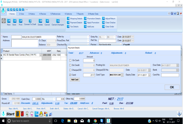 How to receive payment through Credit Card in SwilERP (RetailGraph)
