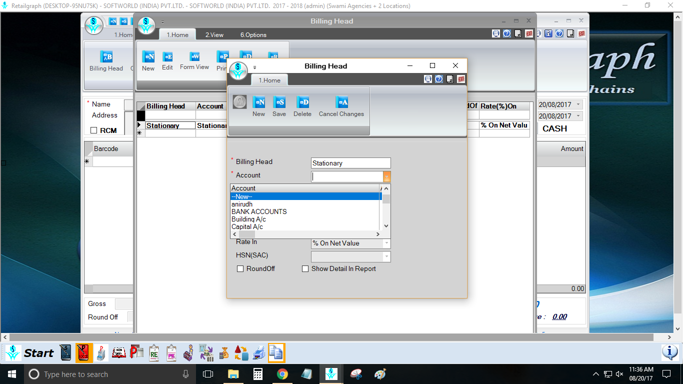 You have to make Billing head in case required billing head not exists in Billing Head master for this click on New and define In the Billing head field type Like Stationary Expenses etc Now go to Account name and select Account and in case account not exists then click on new option from the drop- down and click enter.