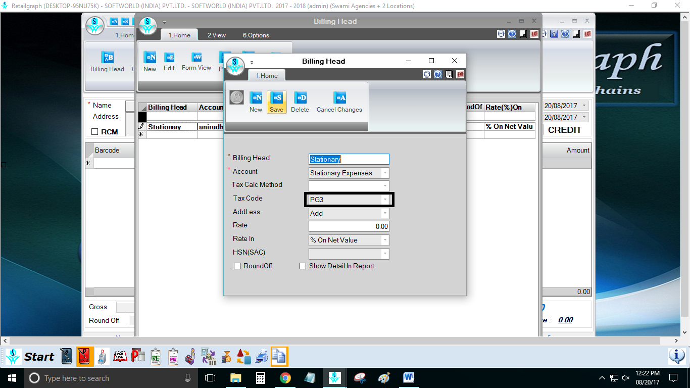 Step1 :Open billing Head from Start->Master->other->Billing Head