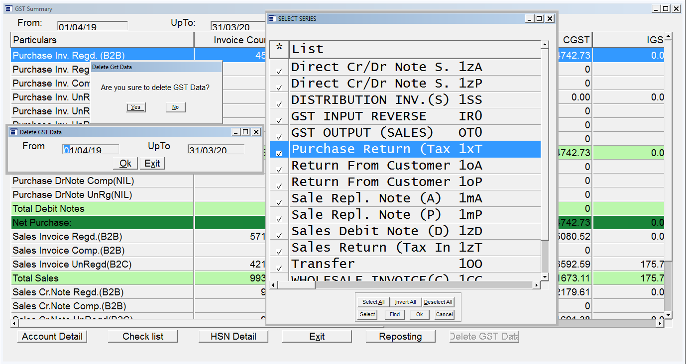 In this article we have explained you about a new option "GST Query" in GST menu in Unisolve/Cross. GST Query shows all GST Transactions in single screen. GST Query helps you to check HSN wise detail which is required in GSTR9 and your CA also requires it for ITC details for each service, which is available in HSN wise detail for purchases. You can right click and export to excel and share the same with Accountant. You can enter Date Range & click on Show Details option and then software calculates & generates all data of Sales & Purchase as per selected date range. In GST Query Difference Amount showing in Red color & Green color indicated amount match properly, when click on Account Detail then it's showing difference details in Account wise. This is very useful for GST Annual Return (GSTR9). Image as per below: