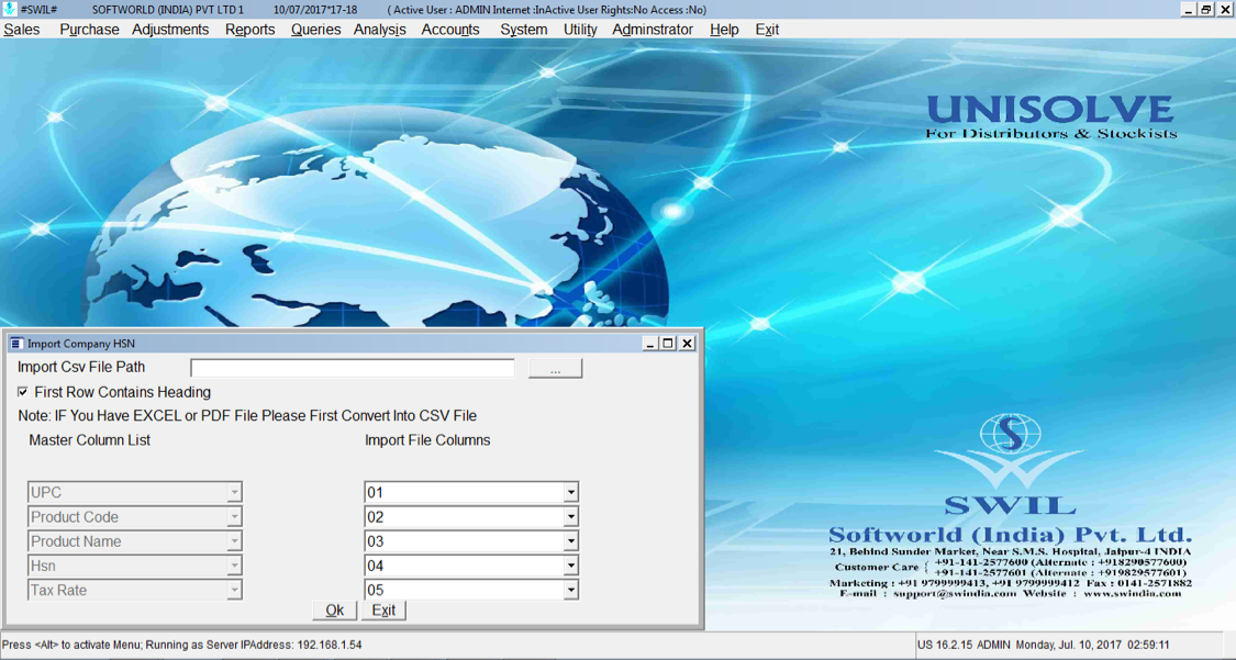 Select CSV File in Above Option Update Company Product Master and HSN Rates