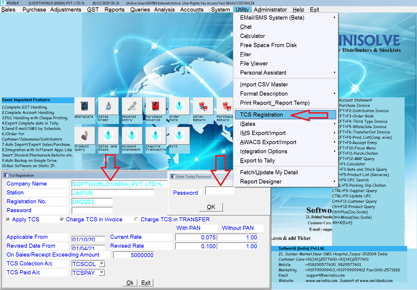 Step1: Enter TCS parameters in TCS registration window in Utility
