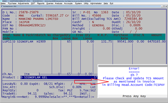 software, auto-posted your TCS Payment amount in the purchase invoice.