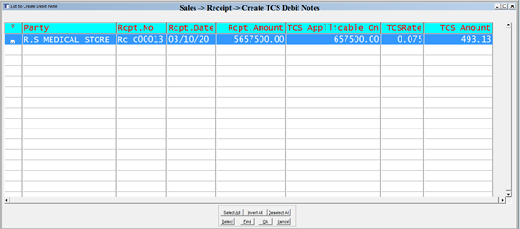 TCS Debit Note” in Sales-> Receipt menu. This option is work when you
