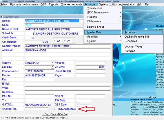 TCS Paid A/c: By Default, software auto-generate a new Account name