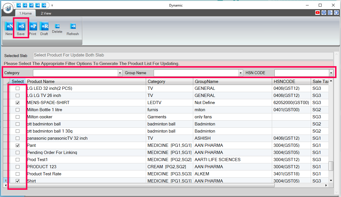 Note: This is a one-time process. Make sure all products are selected and GST slabs are updated before clicking the Save button.