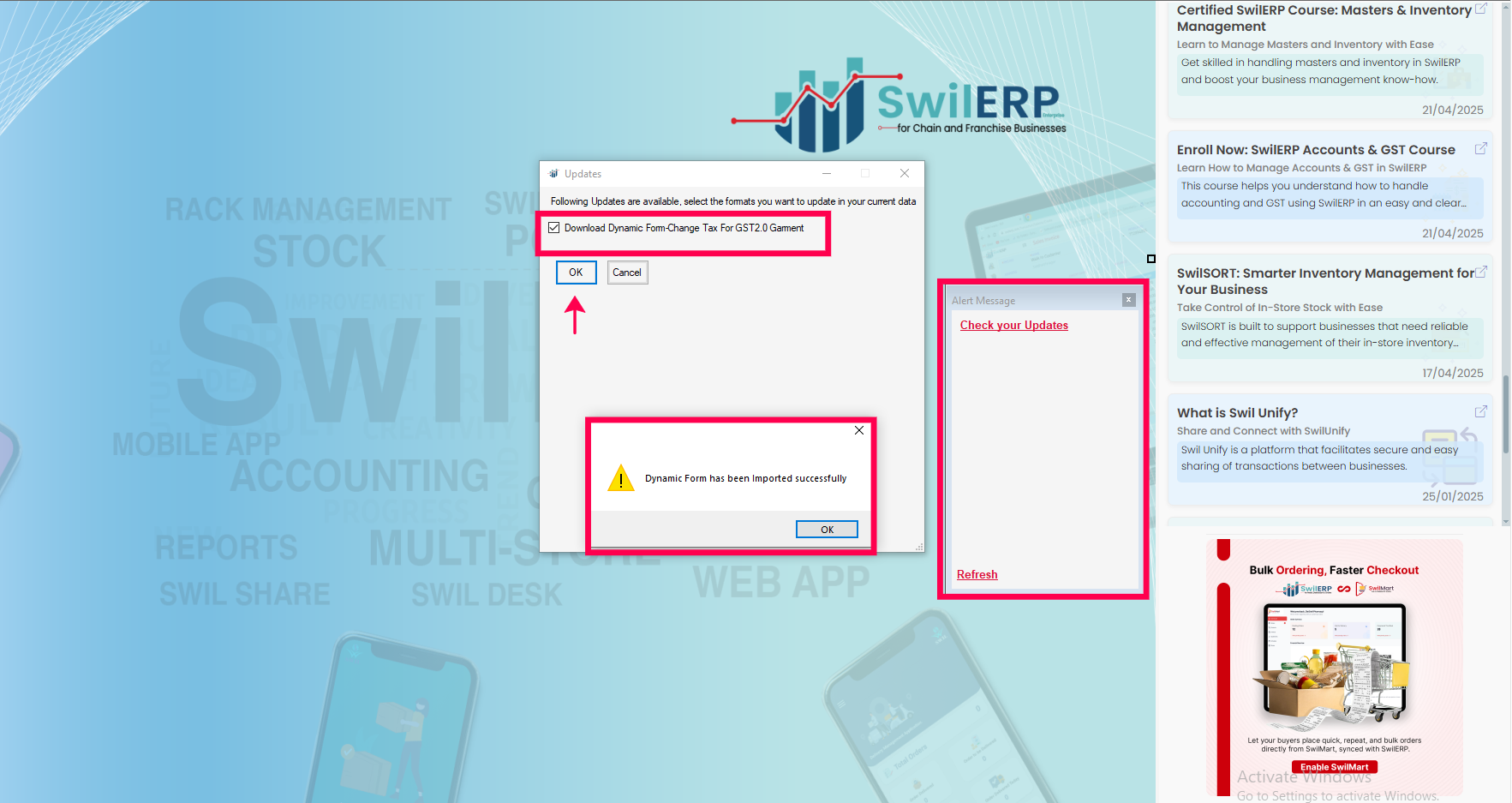 Info: After completing this process, please re-login to your SwilERP software to apply the changes.