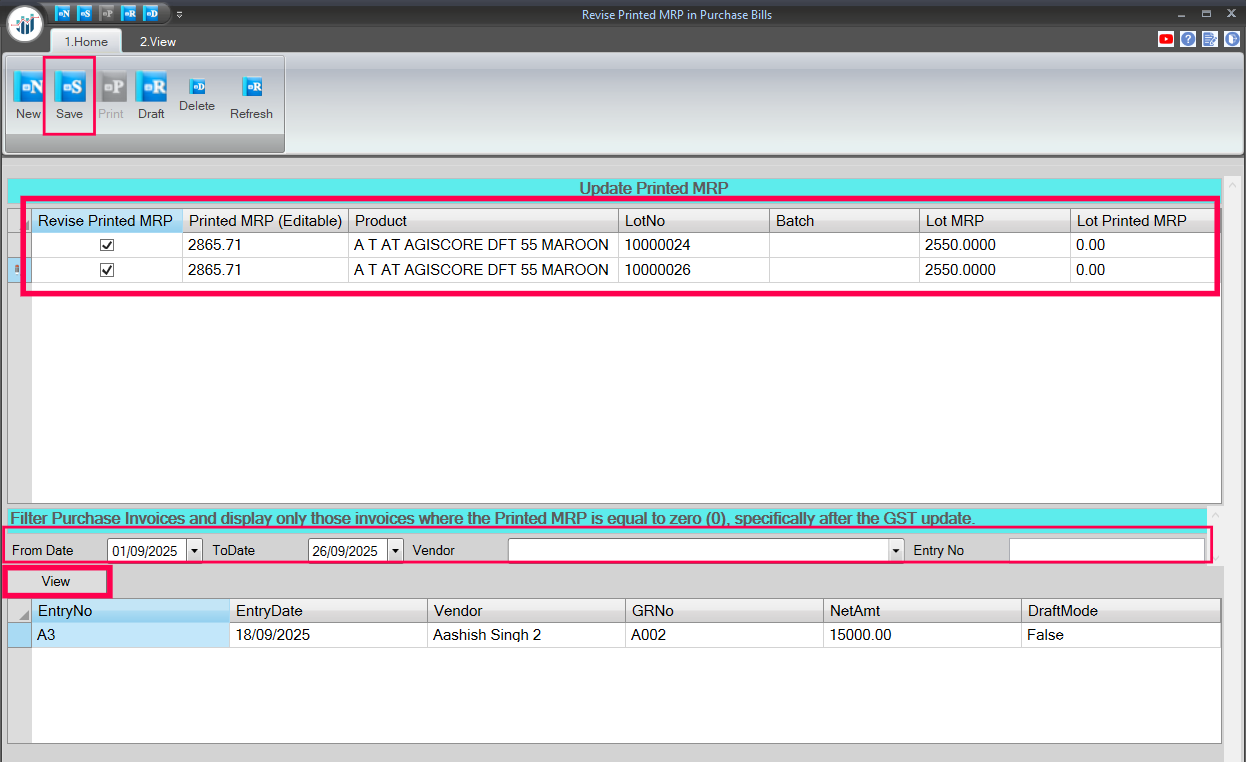 Option 2: Revise Printed MRP in Purchase Bills Entered From 22nd September