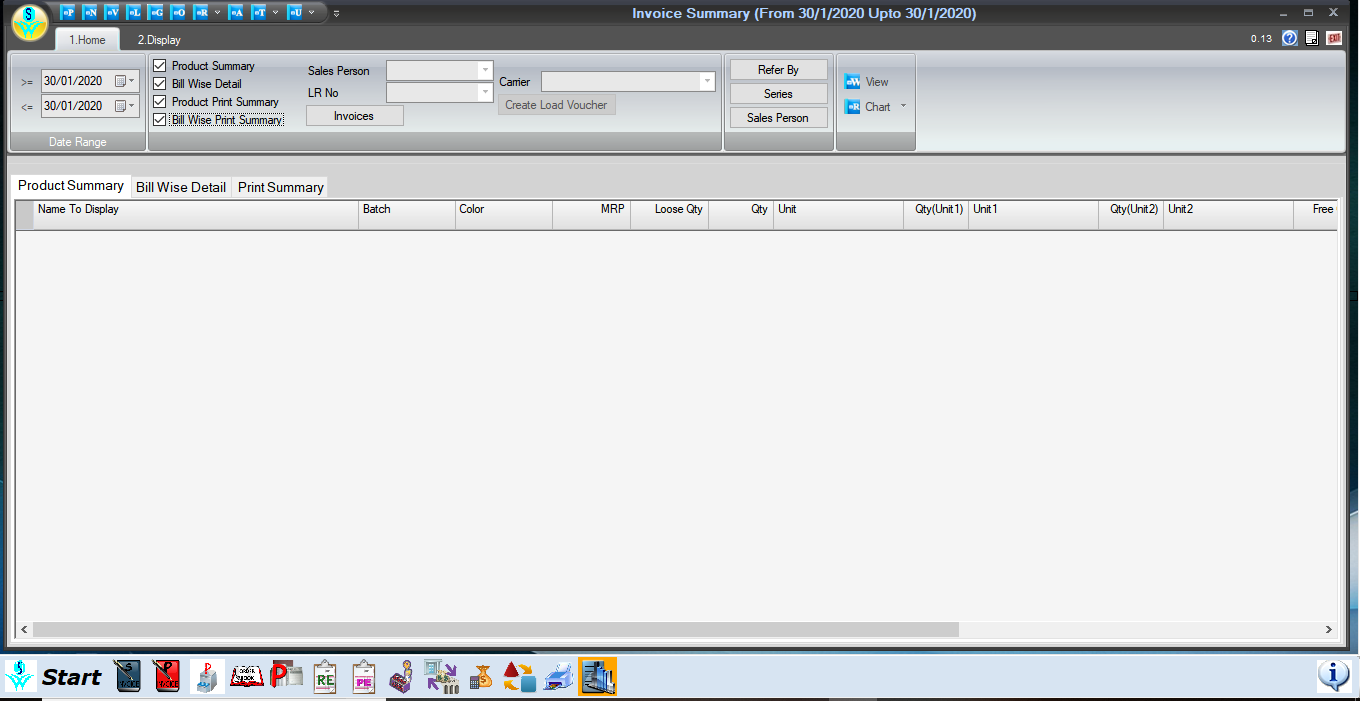 You can view this report in 3 ways 1) Product Summary wise, 2)Bill wise detail, 3) Print Summery Wise as shown in the image below.