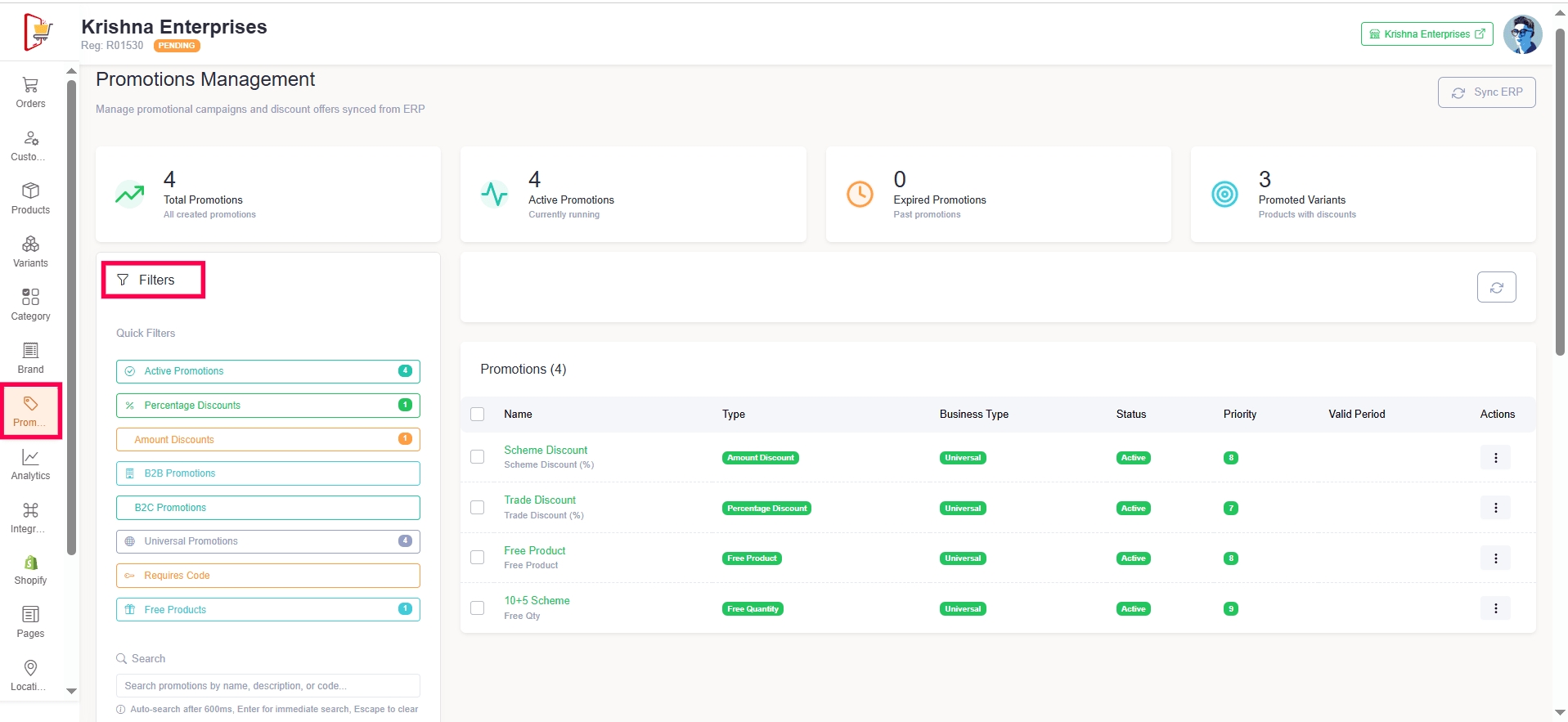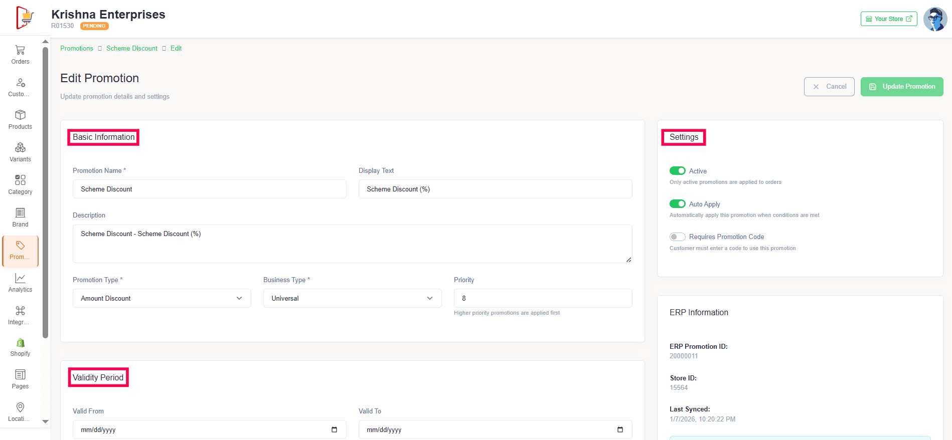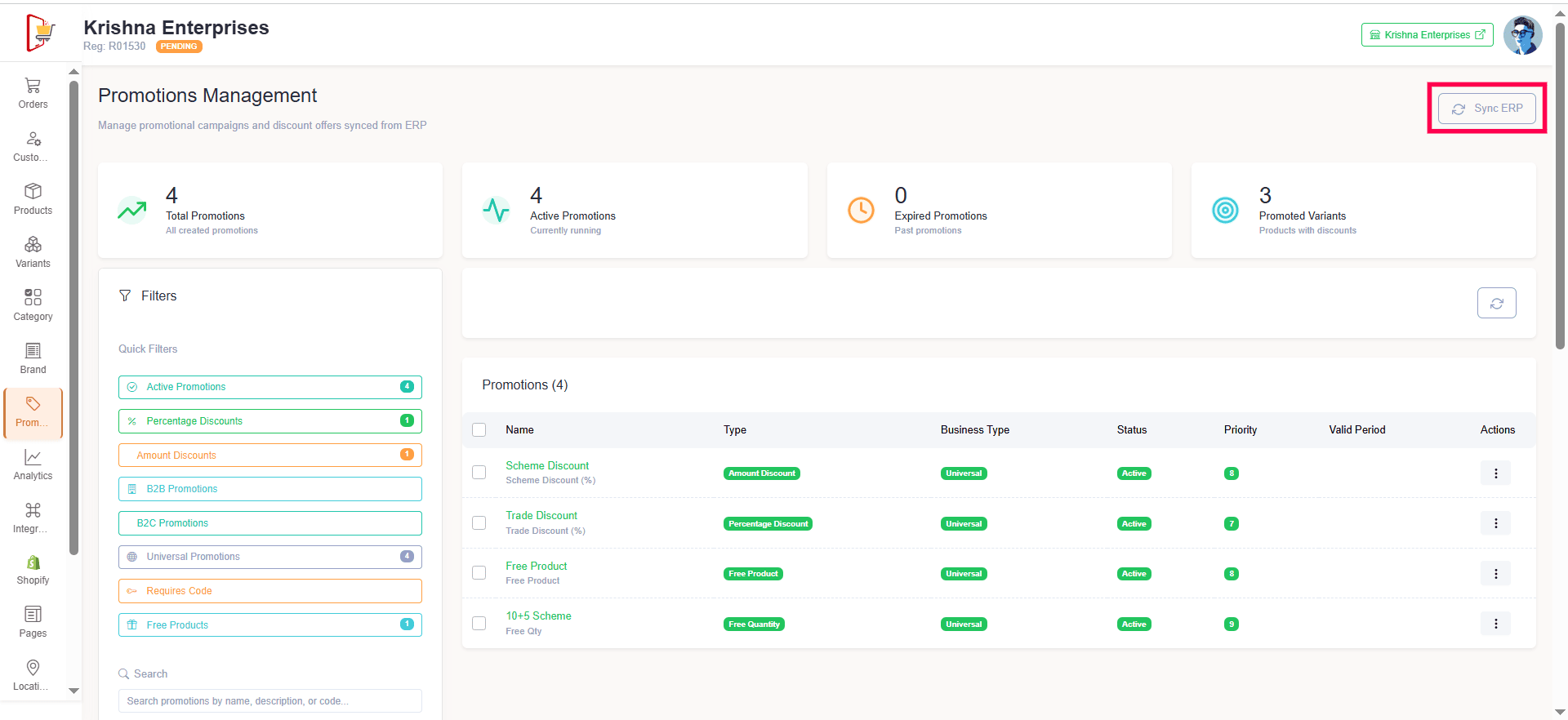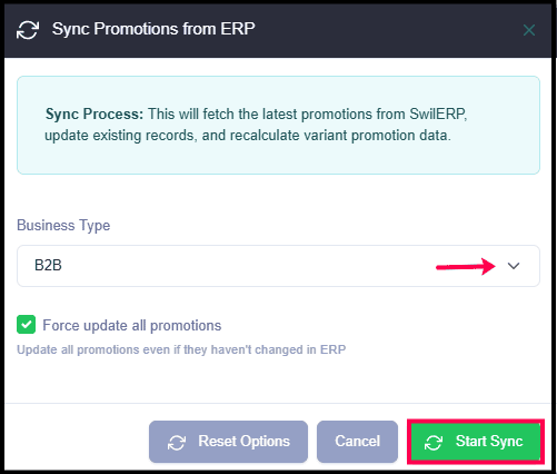 You can sync promotions directly from SwilERP to ensure SwilMart Admin always has the latest data.