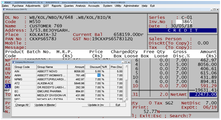 7. F4 Company Wise discount: This option is more useful for company-wise discount & all product discounts in a bill like as this image